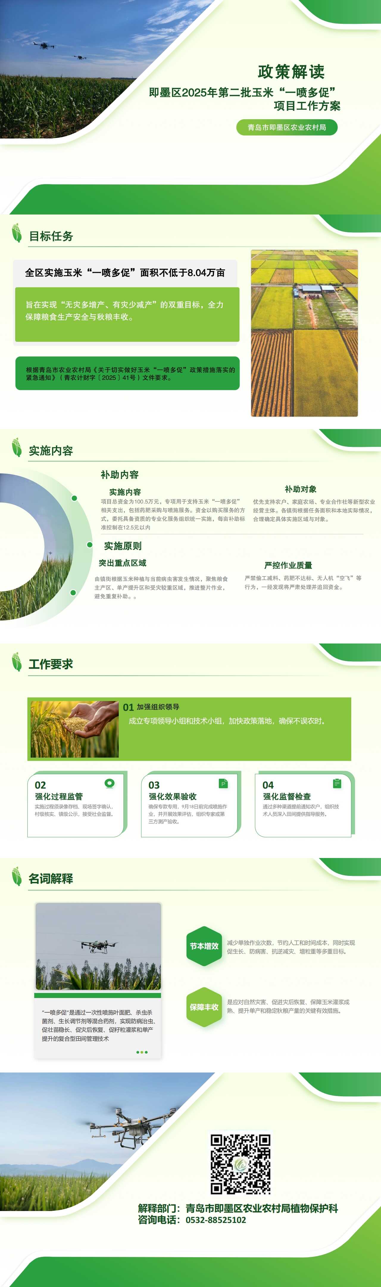 【圖片解讀】青島市即墨區(qū)農(nóng)業(yè)農(nóng)村局關(guān)于印發(fā)《青島市即墨區(qū)2025年玉米“一噴多促”項(xiàng)目實(shí)施方案》的緊急通知