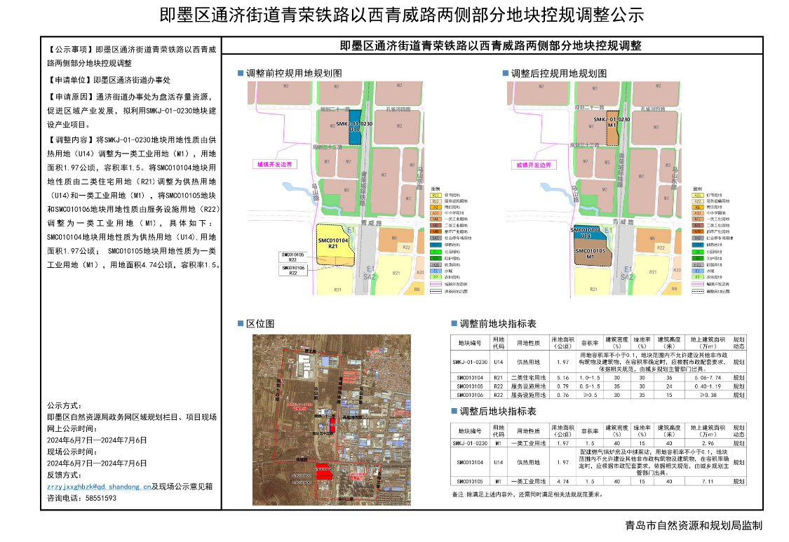 即墨區(qū)通濟街道青榮鐵路以西青威路兩側(cè)部分地塊控規(guī)調(diào)整公示