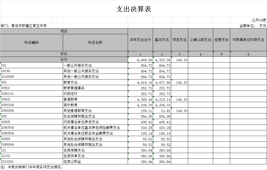 2.教育支出(類)教育管理事務(wù)(款)行政運(yùn)行(項(xiàng))。年初預(yù)算為252.72萬(wàn)元,支出決算為252.72萬(wàn)元,完成年初預(yù)算的100%。決算數(shù)與年初預(yù)算基本持平。教育支出(類)普通教育(款)高中教育(項(xiàng))。年初預(yù)算為4028.13萬(wàn)元,支出決算為4028.13萬(wàn)元,完成年初預(yù)算的100%。決算數(shù)與年初預(yù)算基本持平。教育支出(類)普通教育(款)其他普通教育支出(項(xiàng))。年初預(yù)算為159.11萬(wàn)元,支出決算為159.11萬(wàn)元,完成年初預(yù)算的100%。決算數(shù)與年初預(yù)算基本持平。