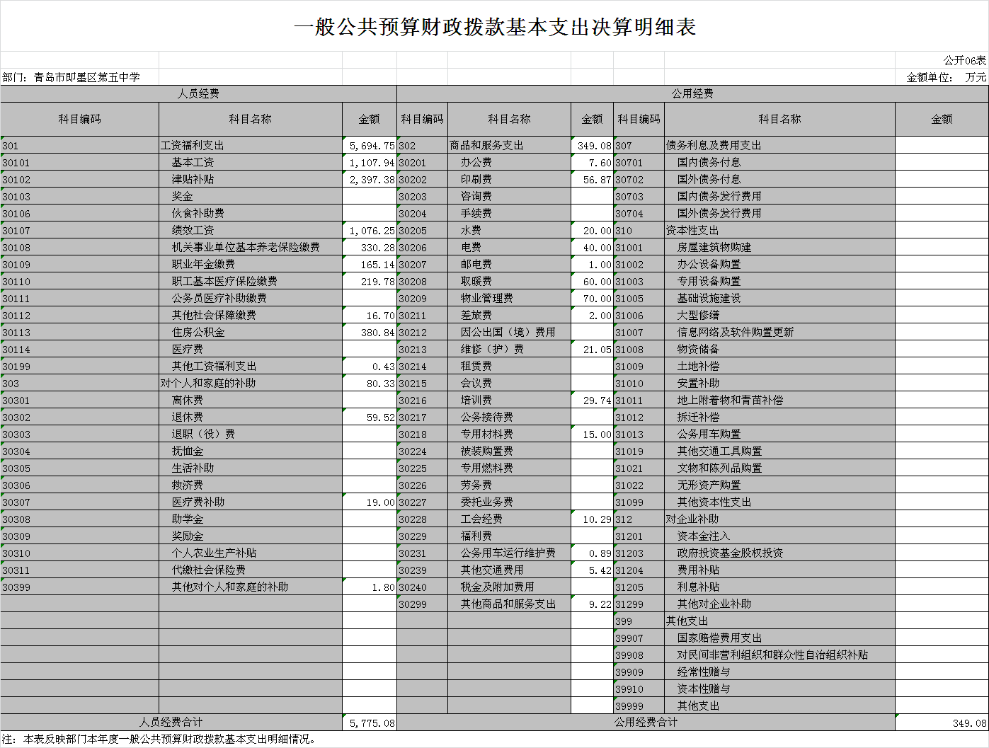 五、一般公共預(yù)算財(cái)政撥款支出決算表