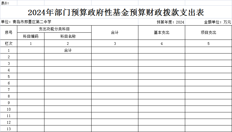 八、2024年單位預算政府性基金預算財政撥款支出表