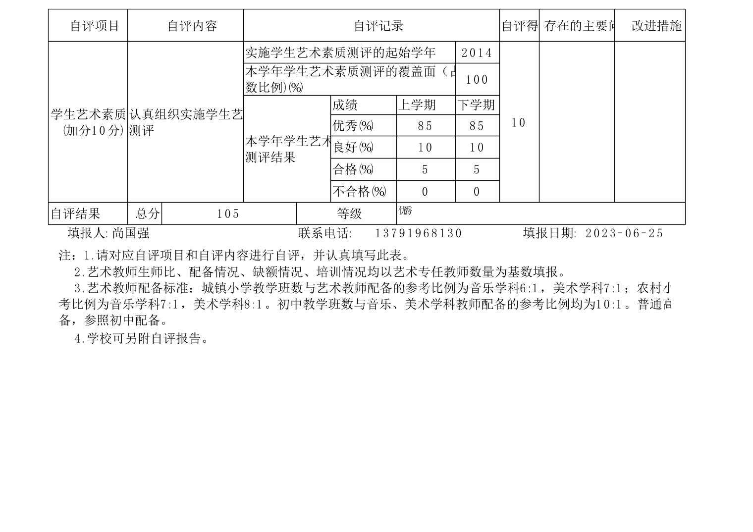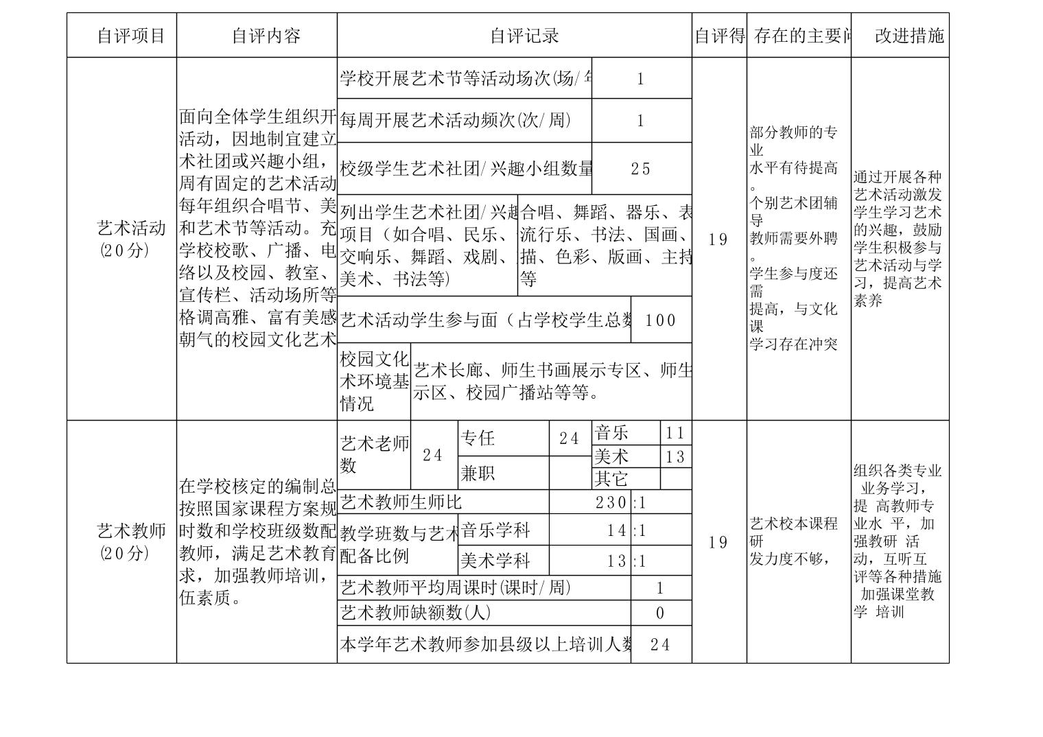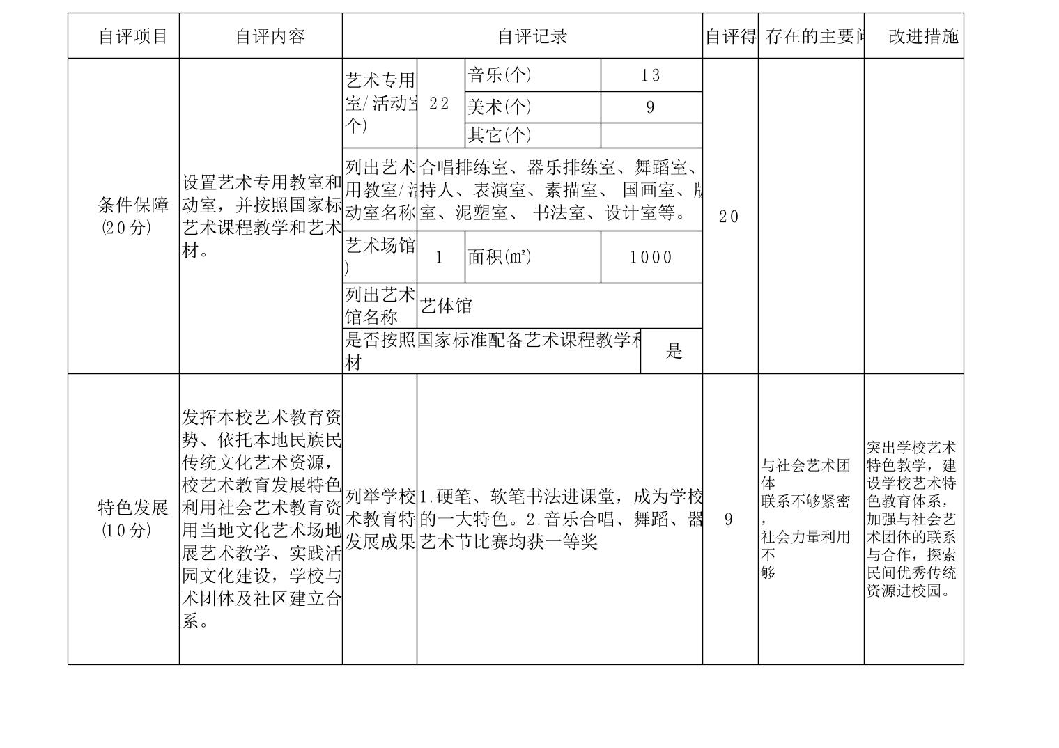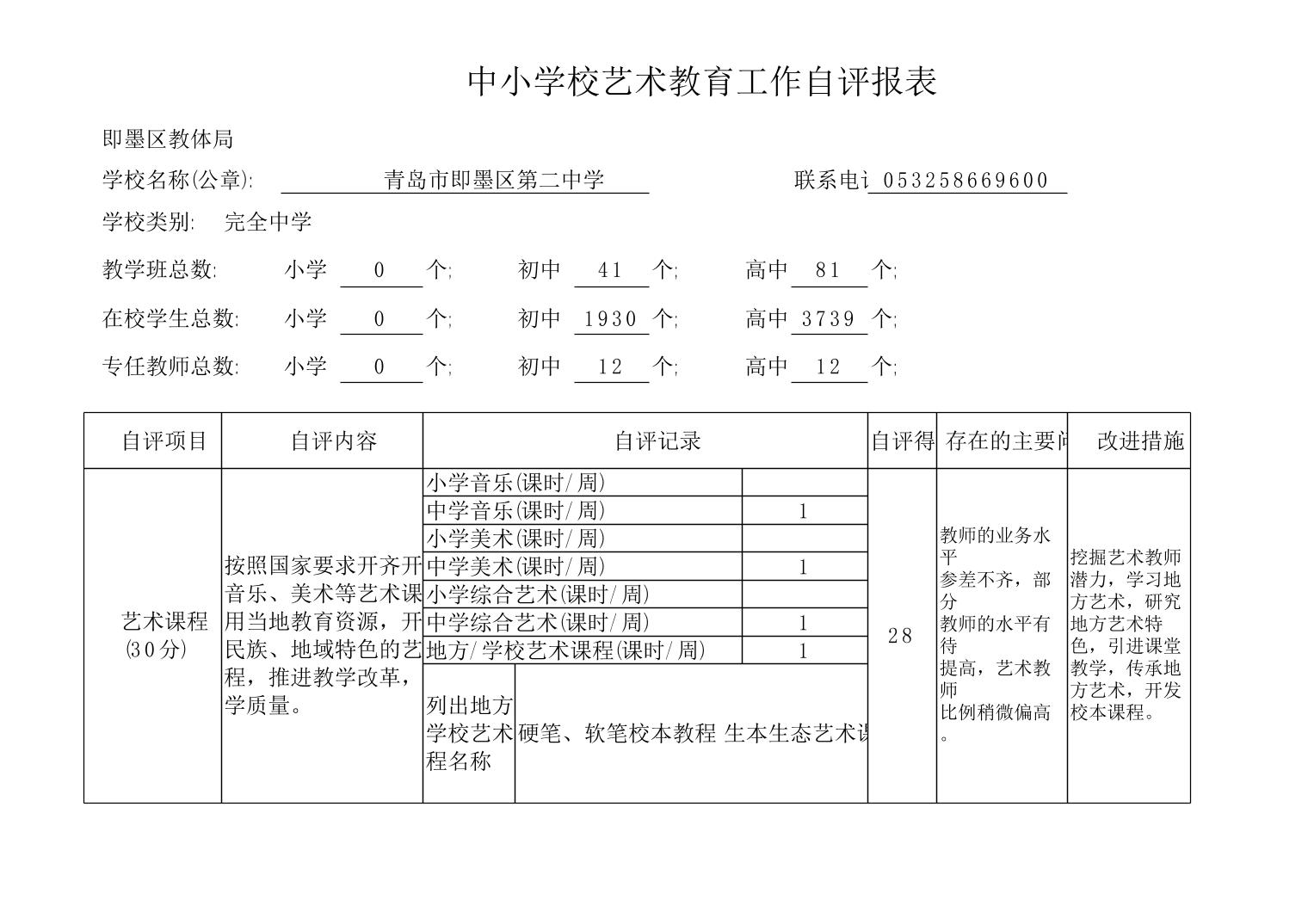 青島市即墨區(qū)第二中學(xué)中小學(xué)校藝術(shù)教育工作自評(píng)報(bào)表
