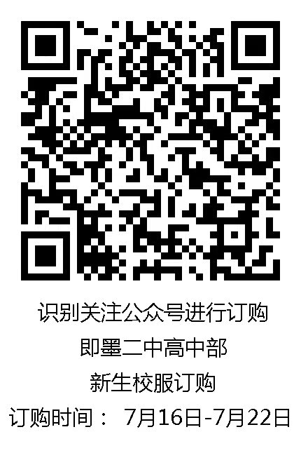 七、校服征訂:今年的校服仍然由家長直接通過網(wǎng)上交費和填報信息征訂,請家長掃描下面二維碼進行校服征訂,開學后由各班直接發(fā)給學生校服。