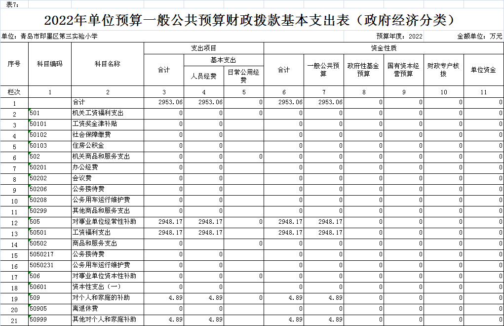七、2022年部門預算一般公共預算財政撥款基本支出表(政府經(jīng)濟分類)