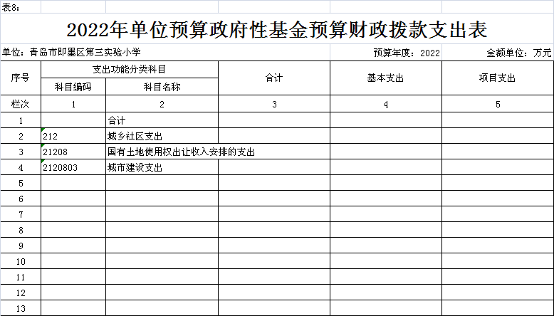 八、2022年部門預算政府性基金預算財政撥款支出表