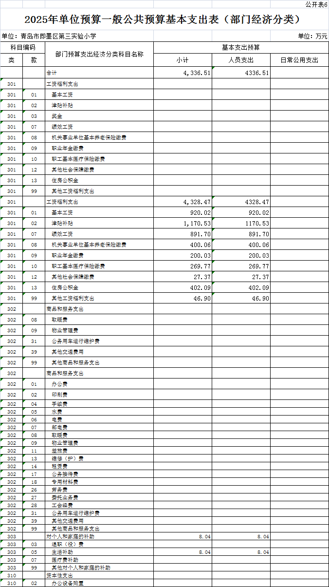 六、2025年單位預(yù)算一般公共預(yù)算財政撥款基本支出表(部門經(jīng)濟分類)
