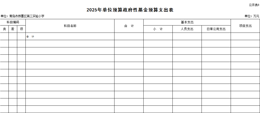 八、2025年單位預(yù)算政府性基金預(yù)算財政撥款支出表