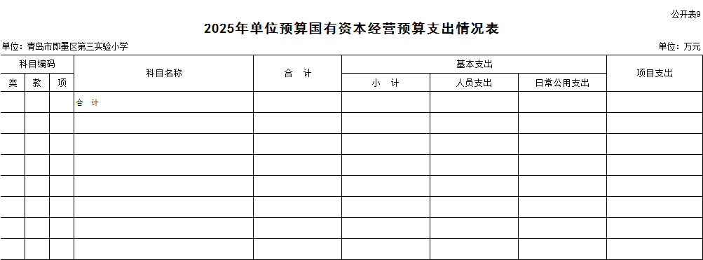 九、2025年單位預(yù)算國有資本經(jīng)營預(yù)算財政撥款支出表