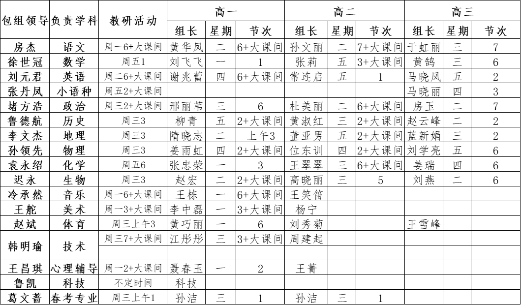 即墨區(qū)第五中學2025-2026學年度第一學期領導包組及集備安排表