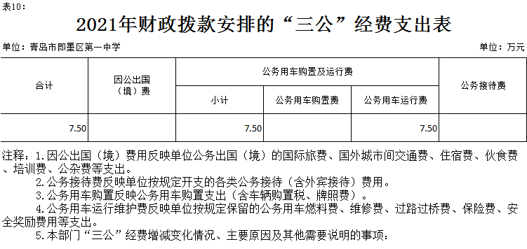 十二、“三公”經(jīng)費:指區(qū)級部門用財政撥款安排的因公出國(境)費、公務(wù)用車購置及運(yùn)行費和公務(wù)接待費。其中,因公出國(境)費反映單位公務(wù)出國(境)的國際差旅費、國外城市間交通費、住宿費、伙食費、培訓(xùn)費、公雜費等支出;公務(wù)用車購置及運(yùn)行費反映單位公務(wù)用車購置支出(含車輛購置稅)及燃料費、維修費、過路過橋費、保險費、安全獎勵費用等支出;公務(wù)接待費反映單位按規(guī)定開支的各類接待(含外賓接待)支出。