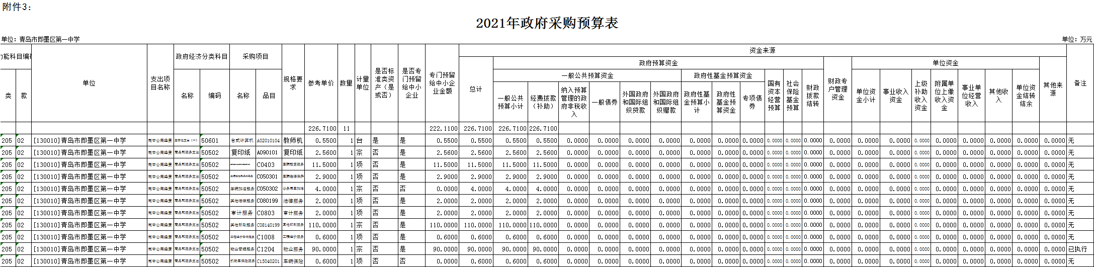 十一、2021年政府采購預(yù)算表