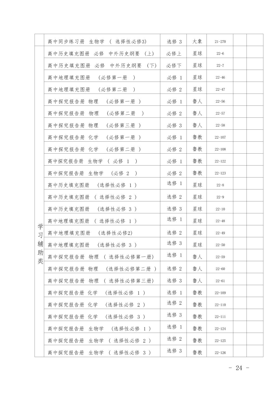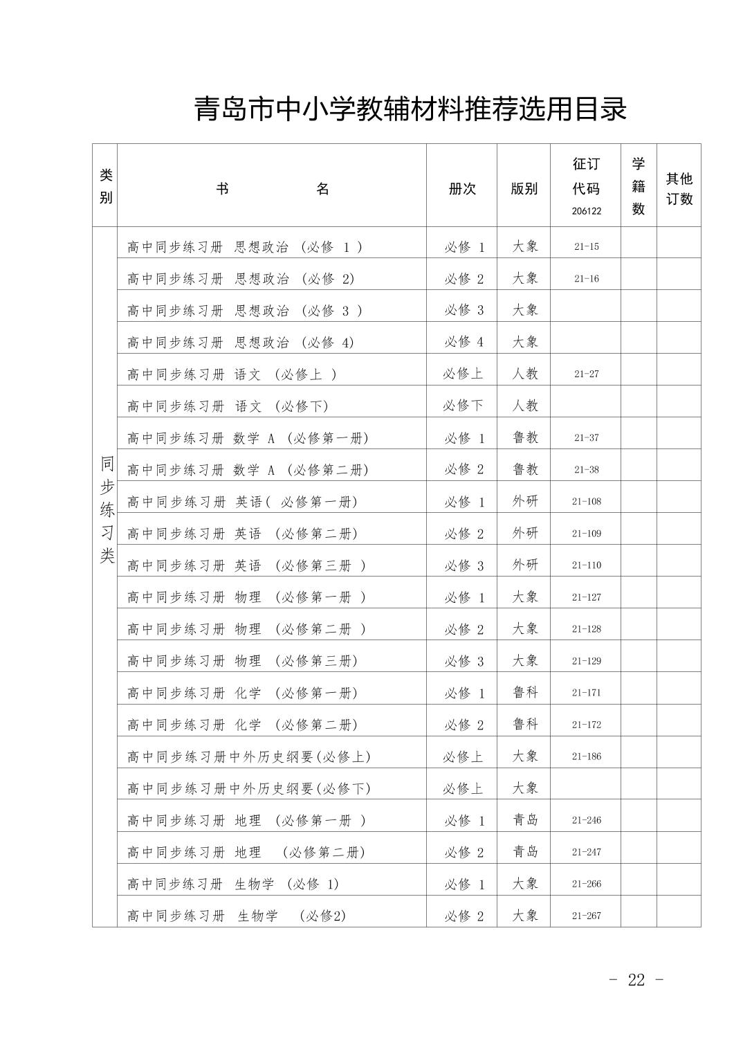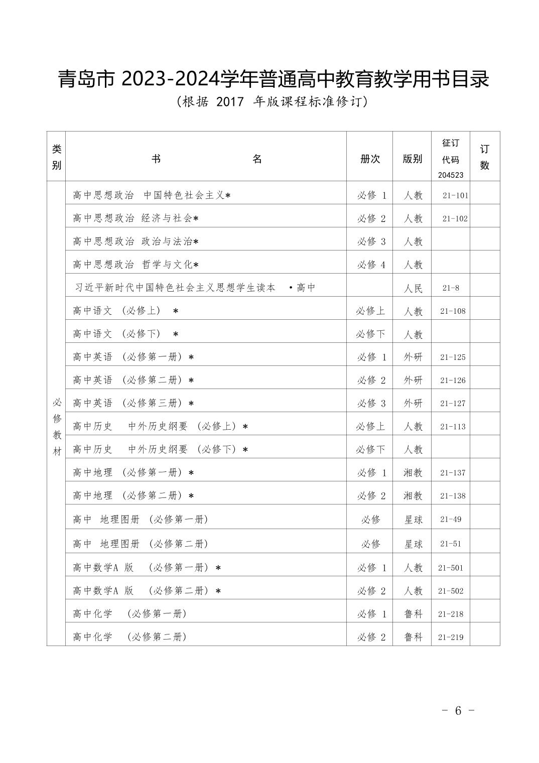 青島市2023-2024學(xué)年普通高中教育教學(xué)用書目錄