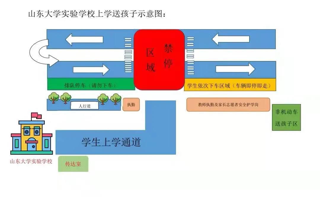 為了確保孩子們進(jìn)出校園的安全,保證有一個(gè)良好的校外交通秩序,老師們?yōu)榇蠹揖脑O(shè)計(jì)了校外交通示意圖,希望大家按照示意圖指示積極配合!